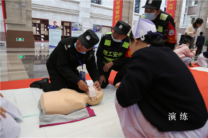 山西省教育厅安稳处处长武振杰、榆次区人民医院副院长牛志斌、晋中市公安局高校分局党委书记、局长王存江、晋中市高校消防救援大队大队长牛旭琼、山西中医药大学保卫部负责人等应邀参加活动。学校相关部门(单位)负责人,安保人员、后勤保障人员、教职工和学生代表等一同参加培训演练。
