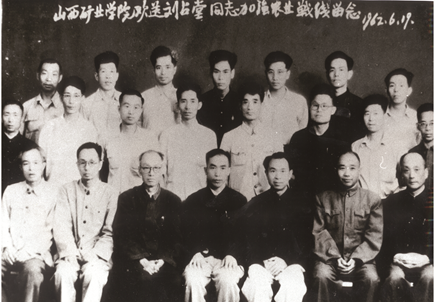 1961年王波教授(前排左起3)带领机电58-1班部分学生赴阳泉三矿现场教学