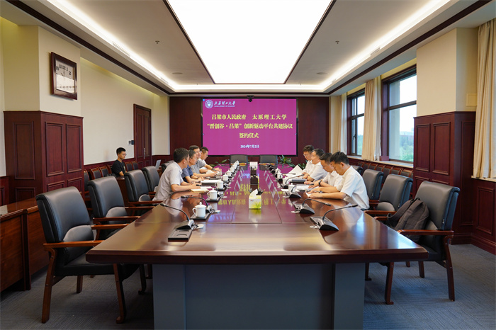 7月2日上午,我校与吕梁市人民政府在明向校区行政A座四层一号会议室举行校市合作座谈会,并签署“晋创谷·吕梁”创新驱动平台共建协议,深化校市合作,共谋发展新篇。校党委副书记、副校长(主持行政工作)孙宏斌会见吕梁市副市长任磊一行,校党委常委、副校长肖连团出席签约仪式。吕梁市相关单位负责人,我校相关部门(单位)负责人参加签约仪式。